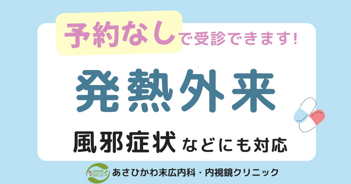 「旭川で風邪や発熱で受診したい」とお考えの方は、どうぞ予約なしでそのままご来院ください。