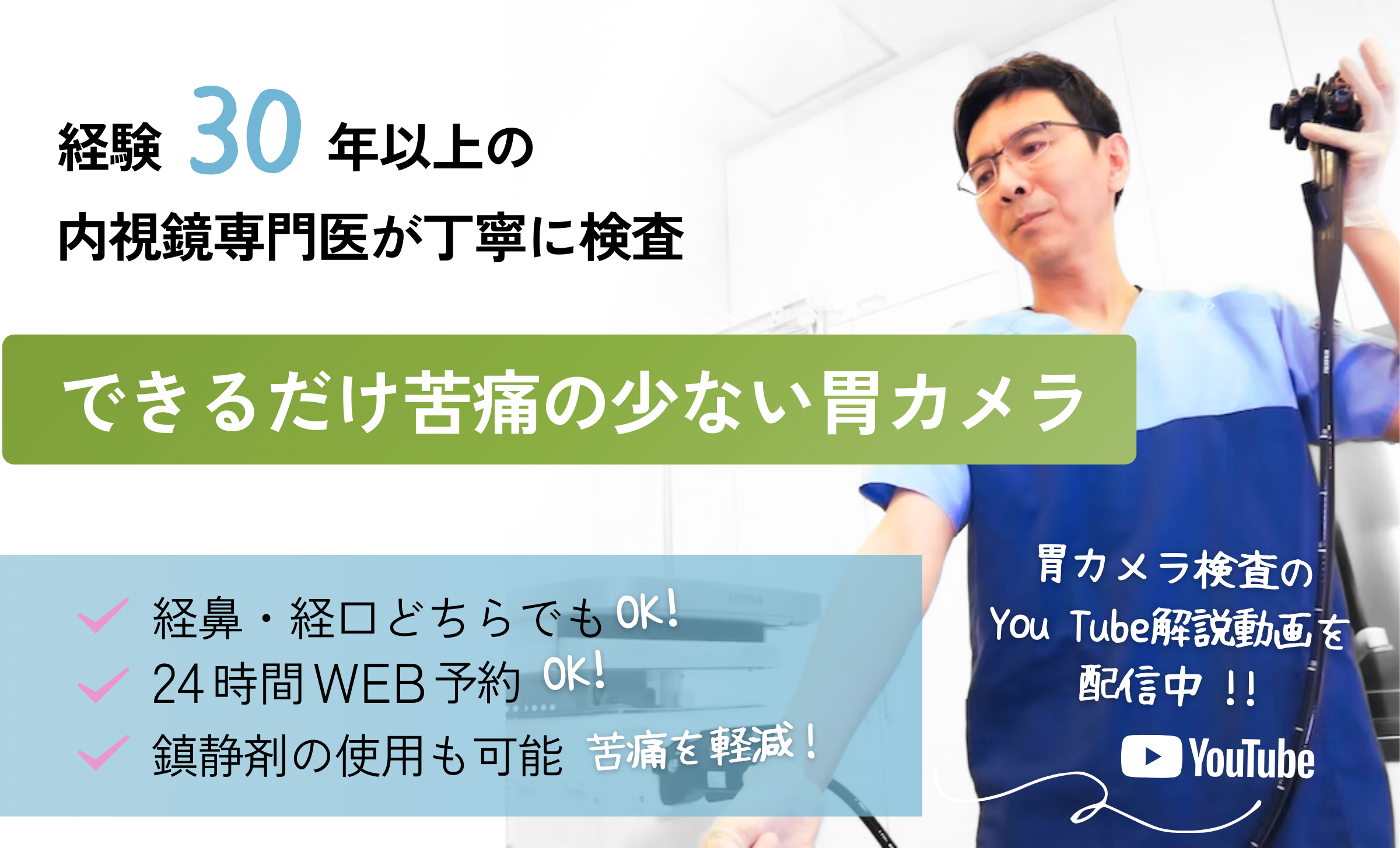 WEB予約、電話予約の場合でも、検査当日に医師が事前診察を行いますのでご安心ください。