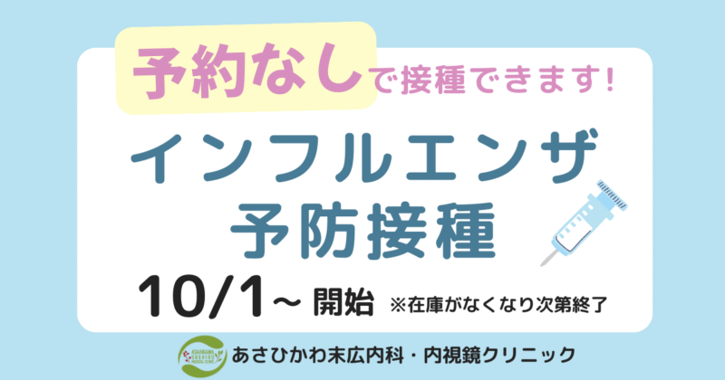 #インフルエンザ予防接種 #予約なし #インフルエンザワクチン #旭川市 #あさひかわ末広内科・内視鏡クリニック